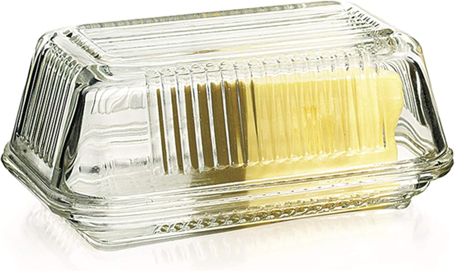The perfect blend of function and design, Home Essentials Glassware is created for every day use in your home. Handcrafted from crystal clear glass, this 4-in-1 Butter Dish has an innovative design that makes it perfect for holding butter, dips, appetizers, and even storing leftovers. A wonderfully versatile dish, it measures 6 1/2 by 4 by 3 inches overall.