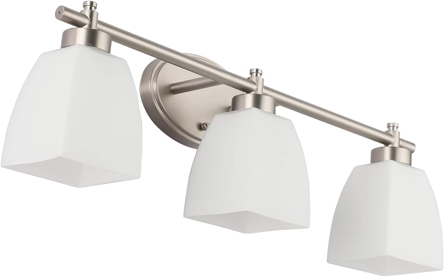 - 【New Design】Modern design bathroom vanity light with milky square glass lampshades, metal housing, perfectly used as bathroom lights over mirror, it is a wonderful makeup vanity light. As the vanity lights for bathroom, it also works well.